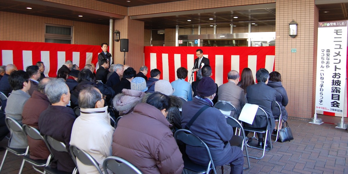 12月10日(土)、豊島区南長崎にて「マンガの聖地としま!モニュメントお披露目会」ならびに「トキワ荘通りお休み処 開設3周年記念」イベントが開催されました。